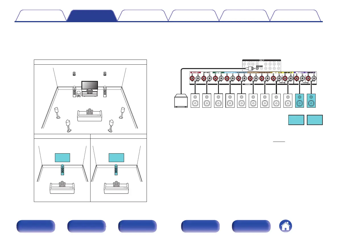 You can connect speakers for up to 9-channels for MAIN ZONE. When you connect speakers for 8 or more channels, the output speakers