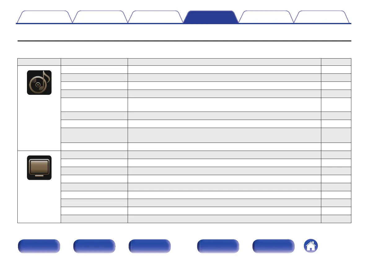 Component Video Out Sets whether to use the component video output connector for MAIN ZONE or ZONE2. 203
