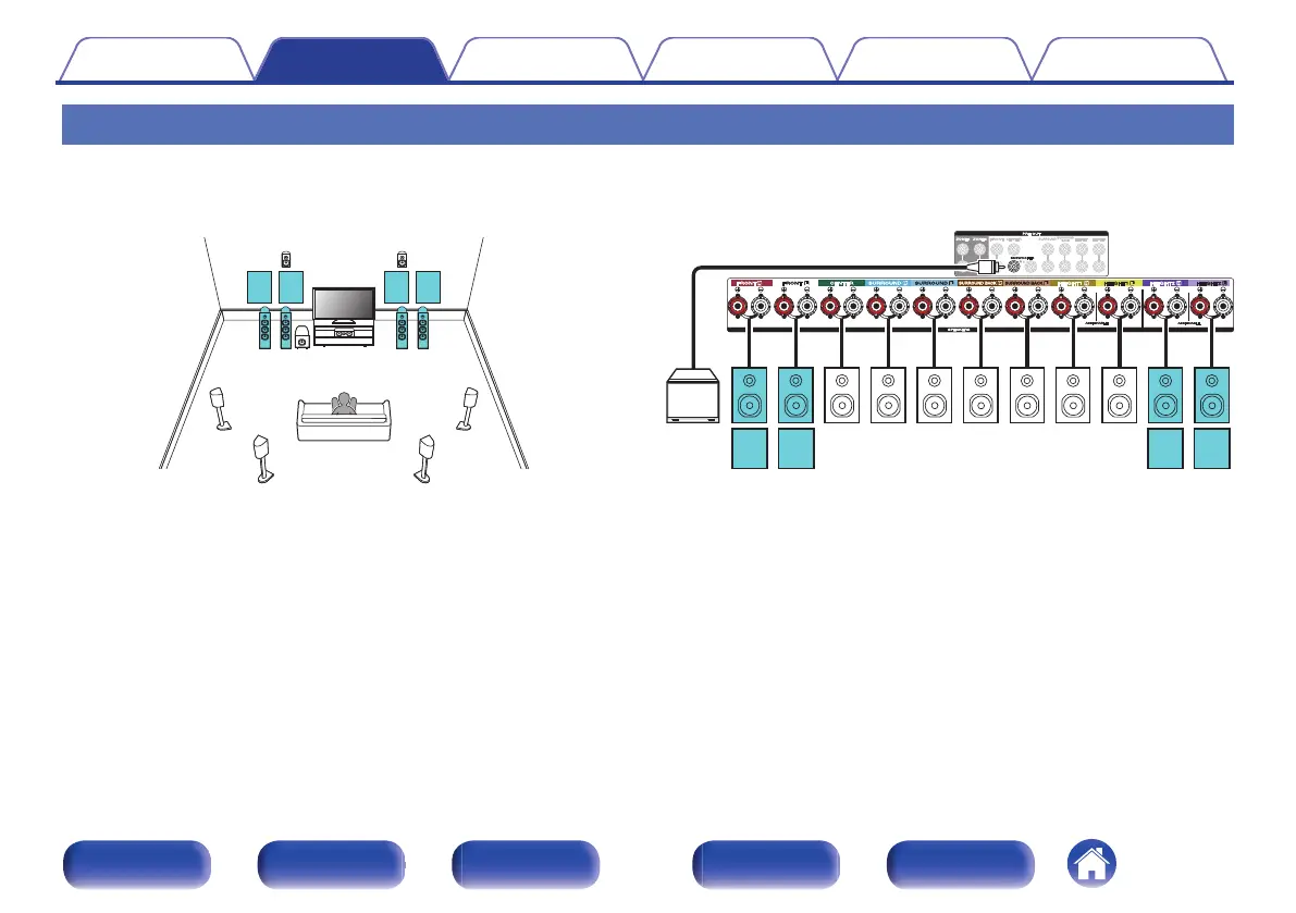 You can connect speakers for up to 9-channels for MAIN ZONE. When you connect speakers for 8 or more channels, the output speakers automatically