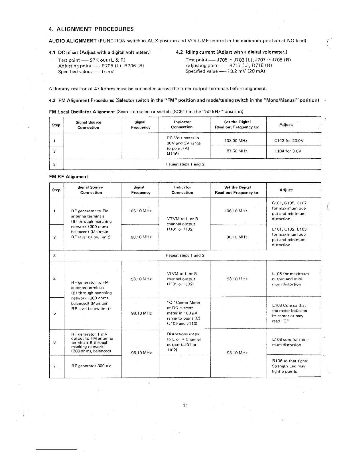 Marantz SR7100DC - Alignment Procedures; Audio Alignment Procedures; FM Alignment Procedures; FM RF Alignment