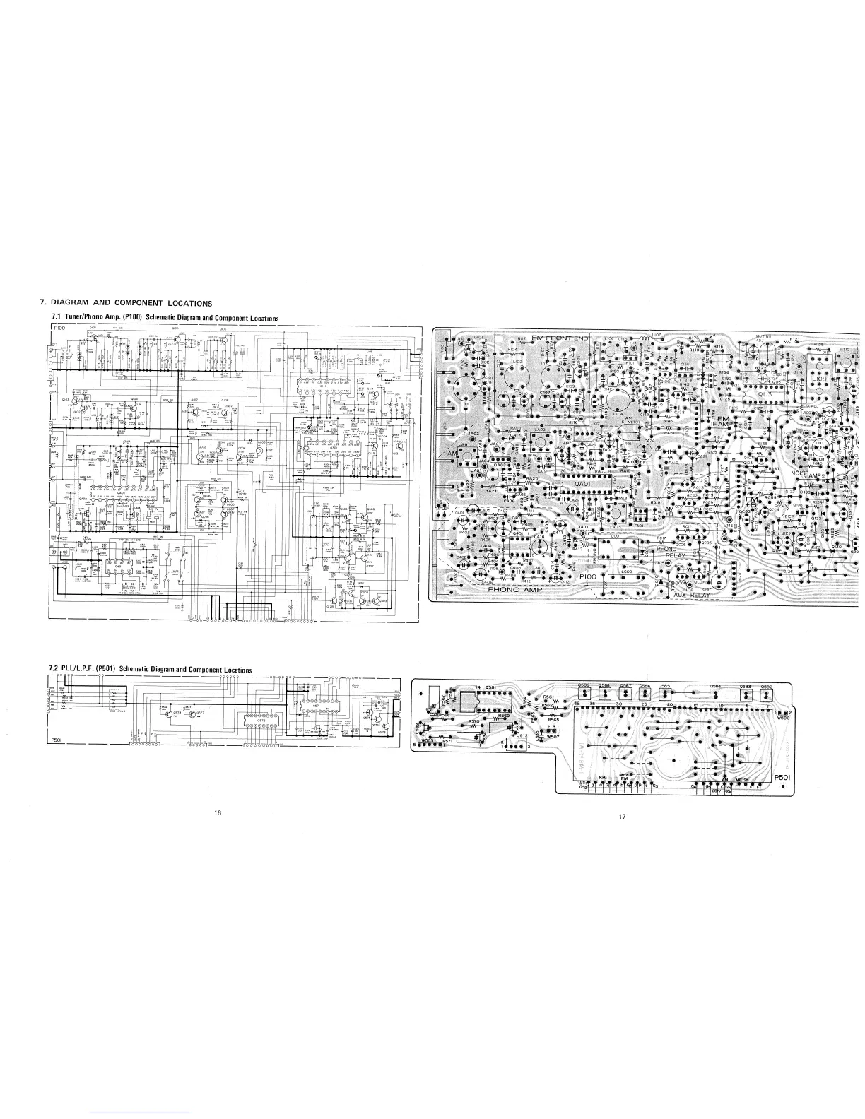 Marantz SR7100DC - Diagram and Component Locations: Tuner and PLL; 7.1 Tuner;Phono Amp. (P100) Schematic and Locations; 7.2 PLL;L.P.F. (P501) Schematic and Locations