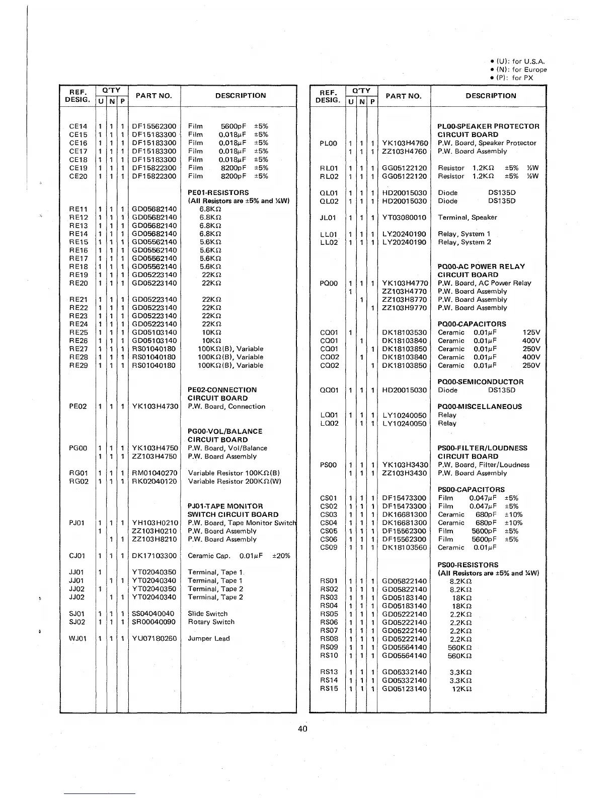 Marantz SR7100DC - Electrical Parts List: PU00, PU50, PW01 Boards; PU00 Semiconductors; PU50 C;F Display Circuit Board; PW01 Head Phone Circuit Board