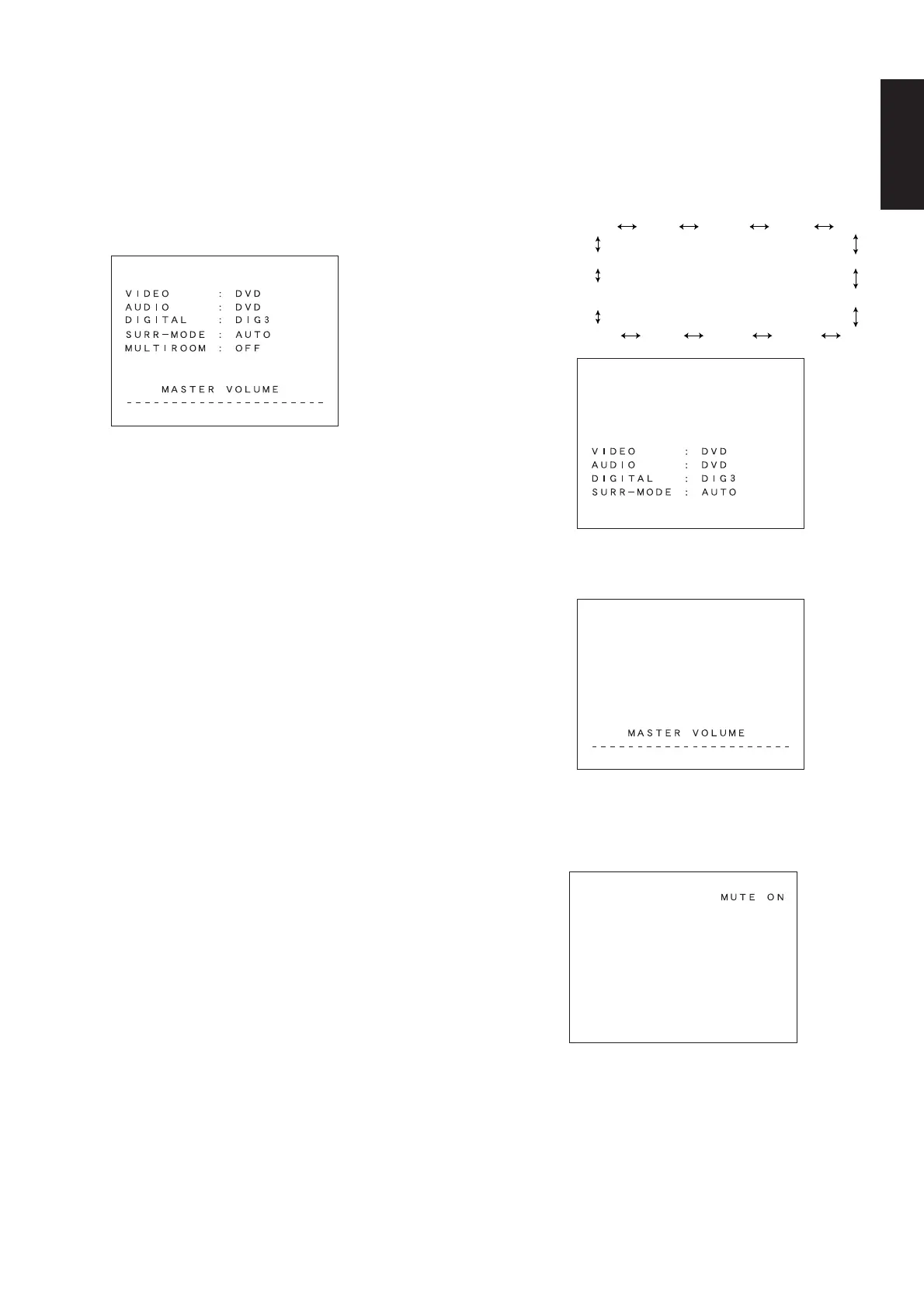 When the MUTE button !2/⁄3 is pressed, “MUTE ON” will be shown on