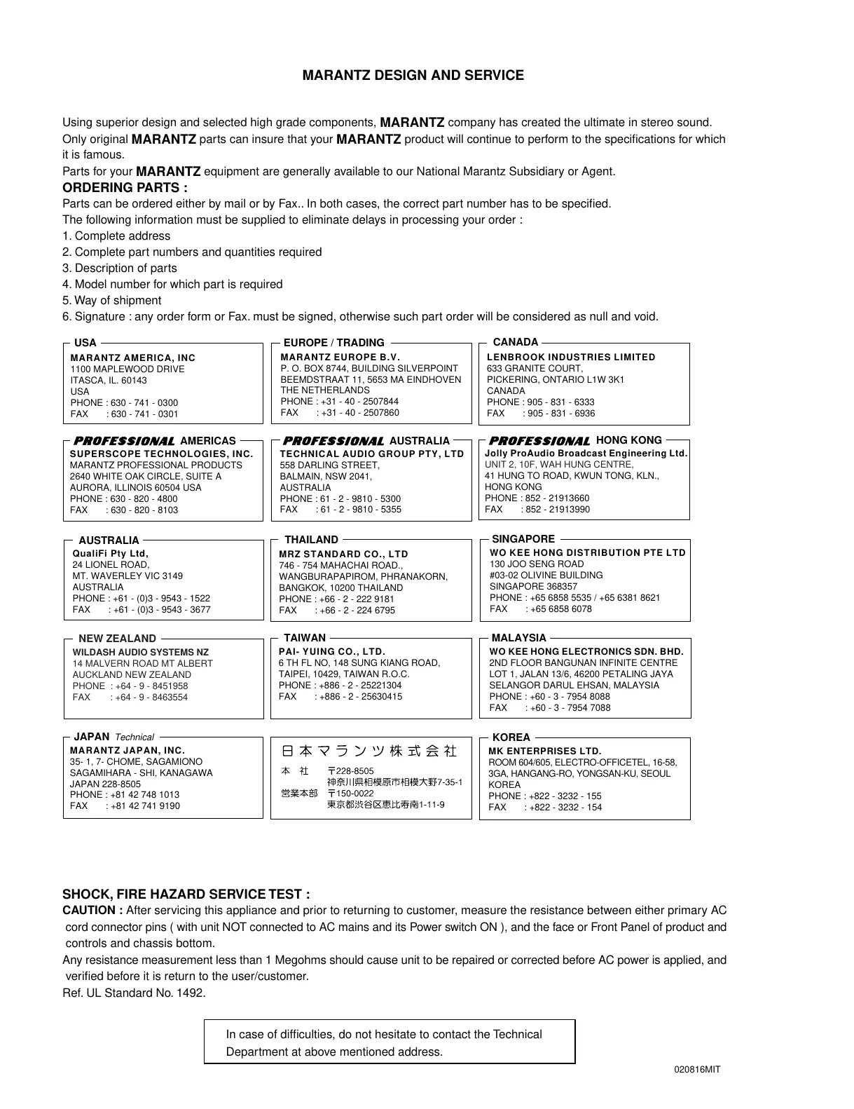 SHOCK, FIRE HAZARD SERVICE TEST :