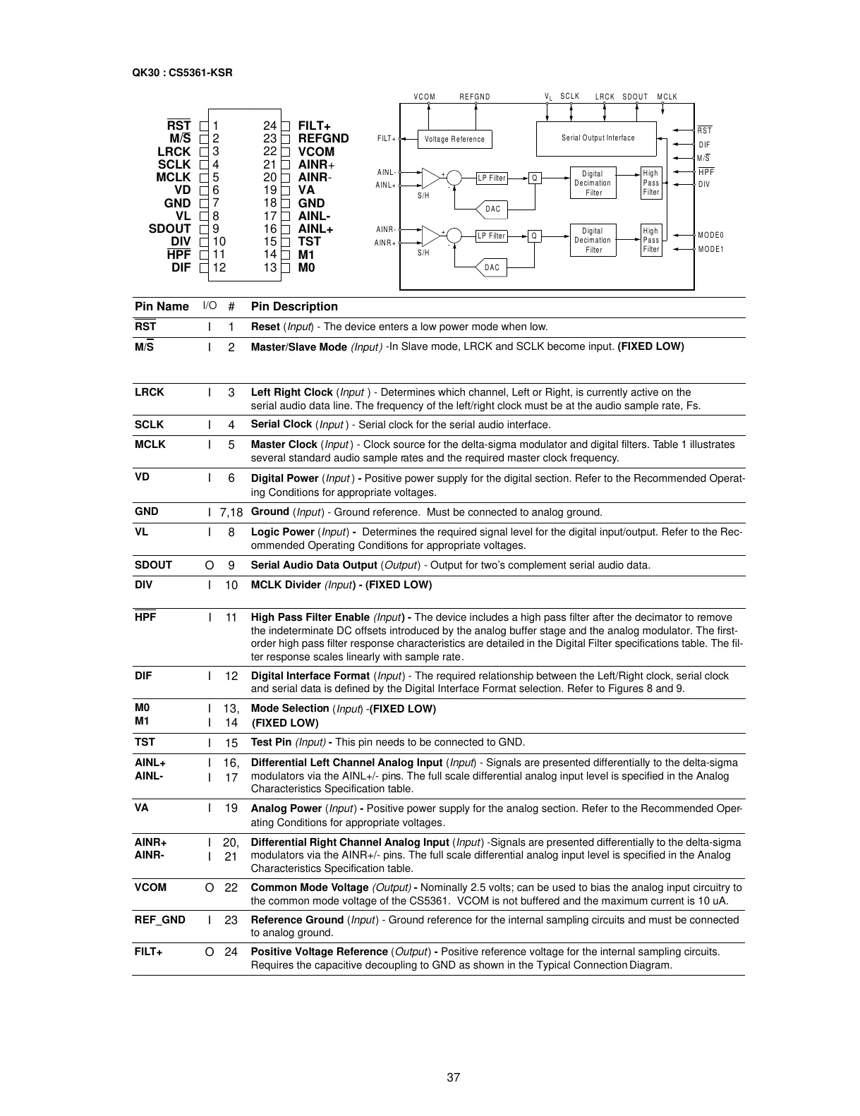 ) - Clock source for the delta-sigma modulator and digital filters. Table 1 illustrates