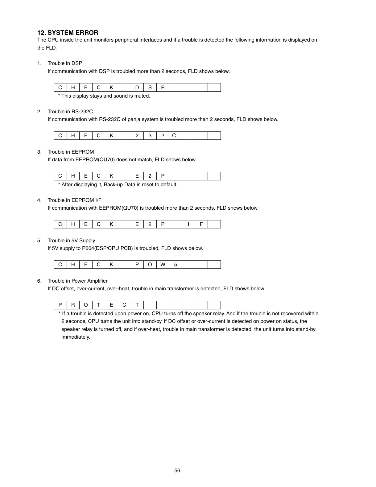 * If a trouble is detected upon power on, CPU turns off the speaker relay. And if the trouble is not recovered within