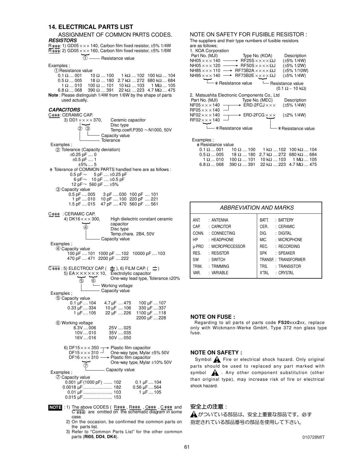 NOTE ON SAFETY FOR FUSIBLE RESISTOR :