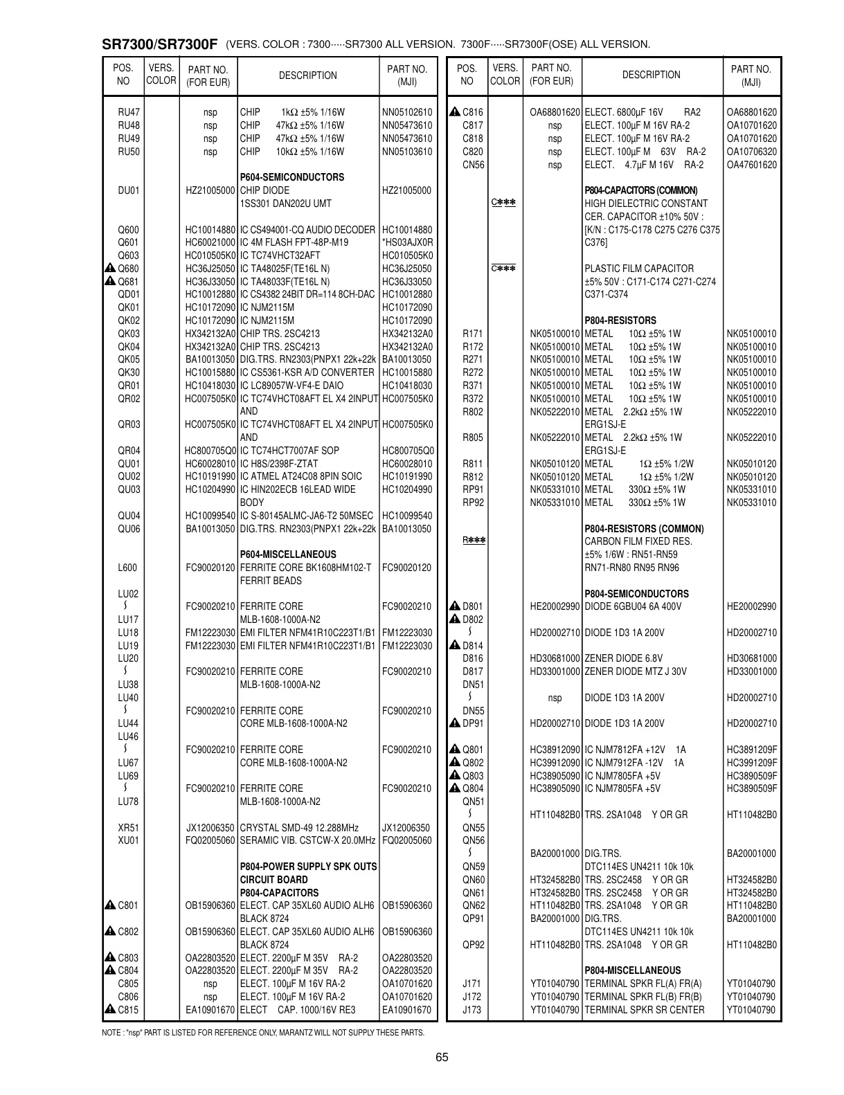 NOTE : "nsp" PART IS LISTED FOR REFERENCE ONLY, MARANTZ WILL NOT SUPPLY THESE PARTS.