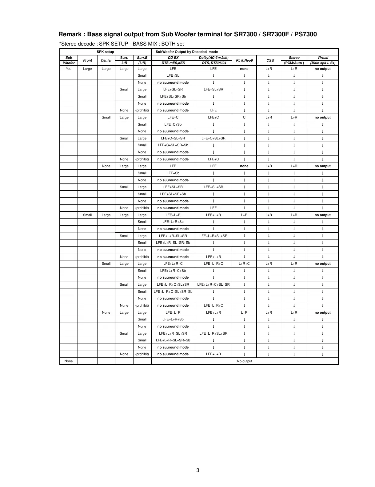 Remark : Bass signal output from Sub Woofer terminal for SR7300 / SR7300F / PS7300