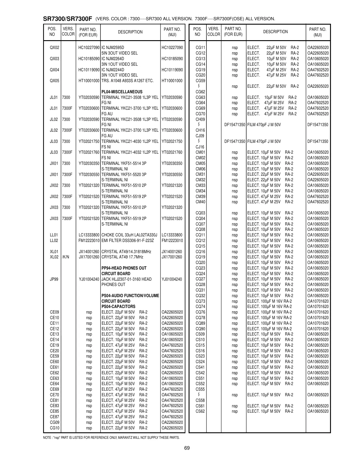 NOTE : "nsp" PART IS LISTED FOR REFERENCE ONLY, MARANTZ WILL NOT SUPPLY THESE PARTS.