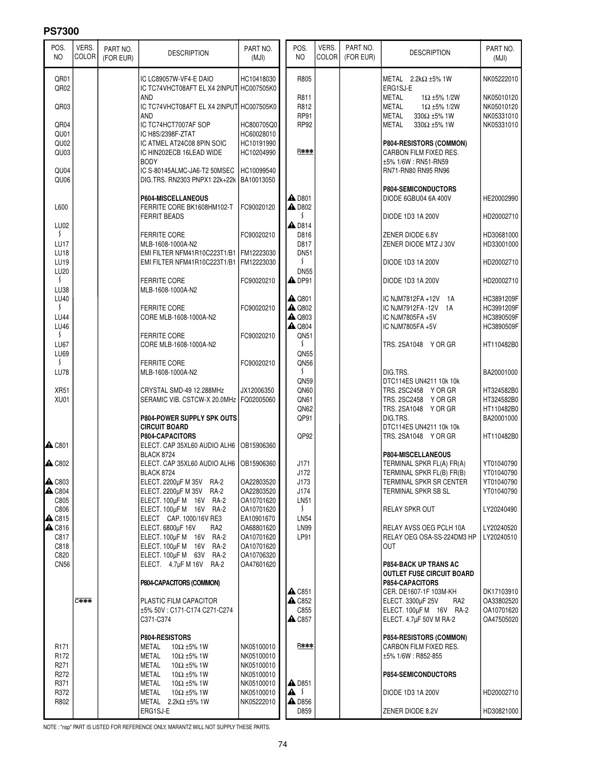 NOTE : "nsp" PART IS LISTED FOR REFERENCE ONLY, MARANTZ WILL NOT SUPPLY THESE PARTS.