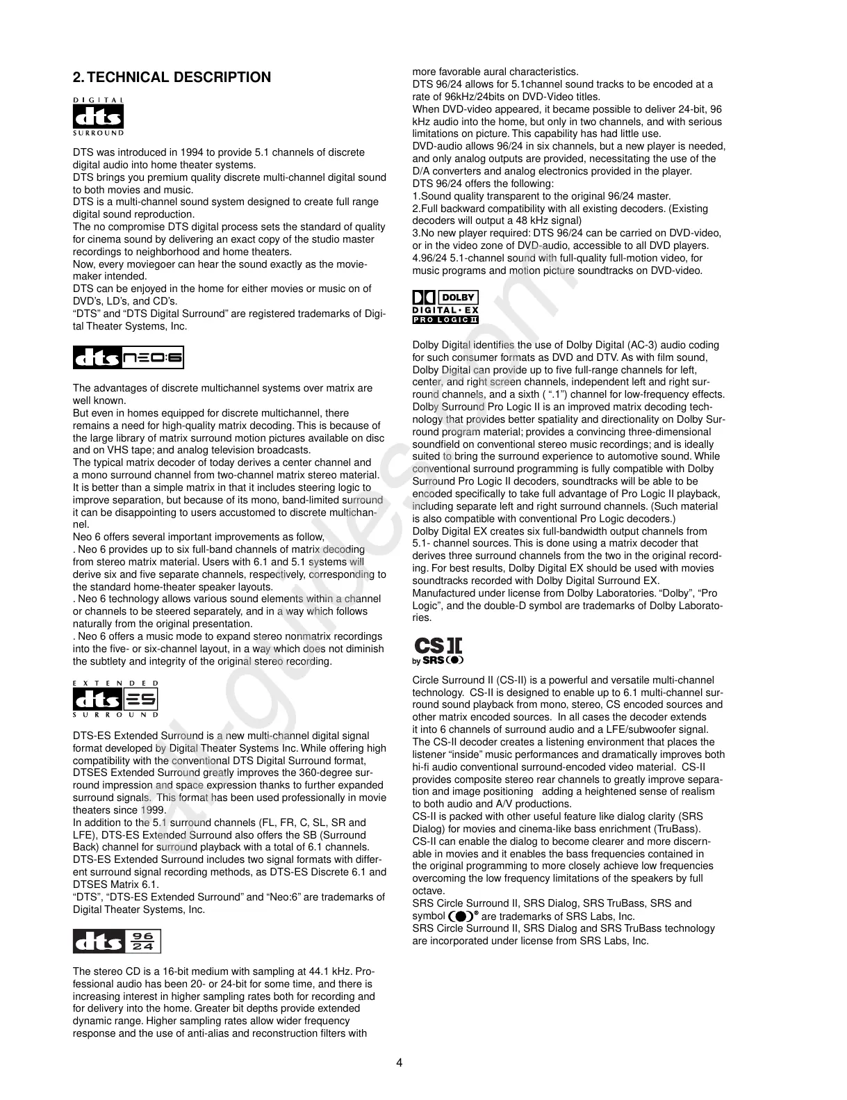 “DTS”, “DTS-ES Extended Surround” and “Neo:6” are trademarks of