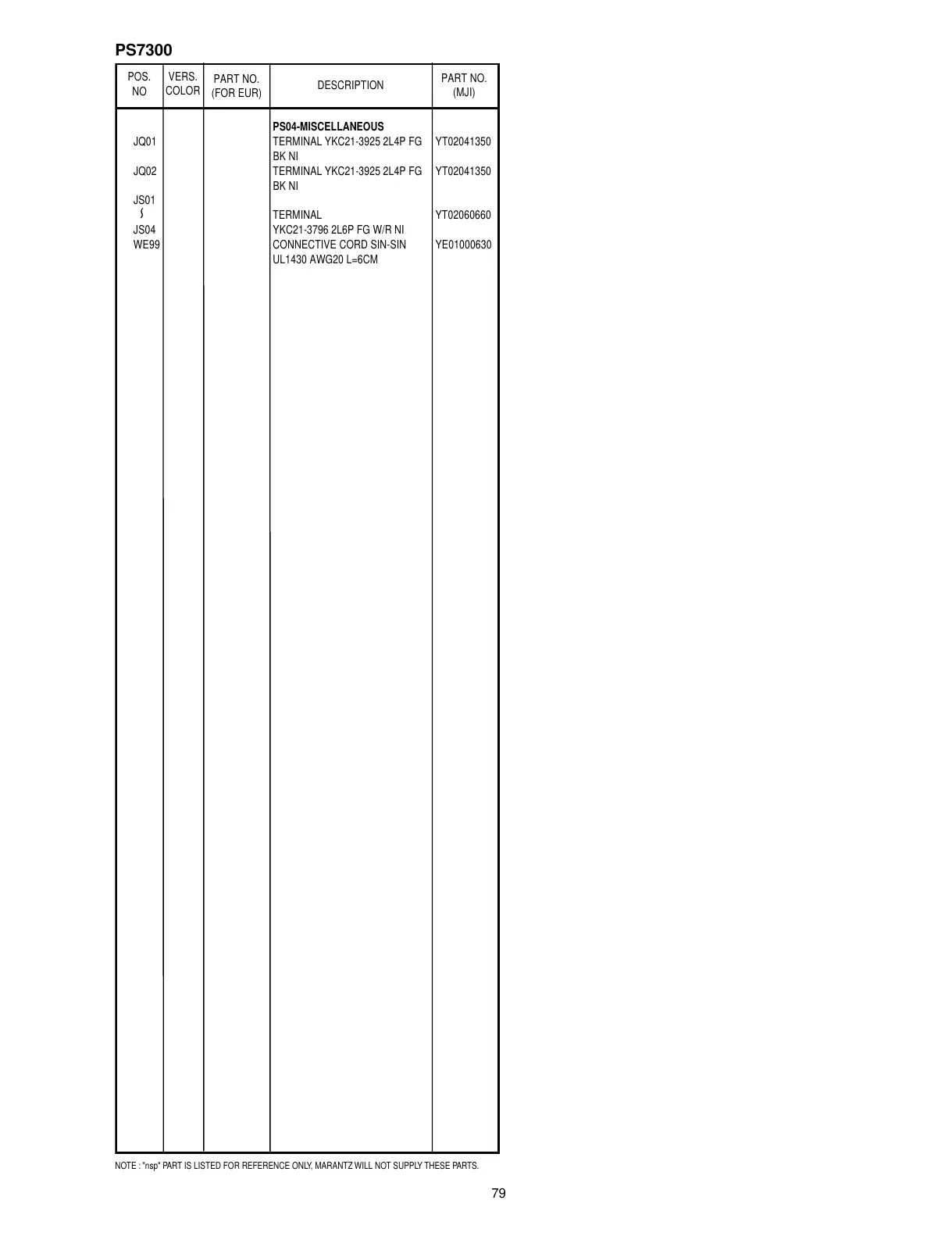 NOTE : "nsp" PART IS LISTED FOR REFERENCE ONLY, MARANTZ WILL NOT SUPPLY THESE PARTS.