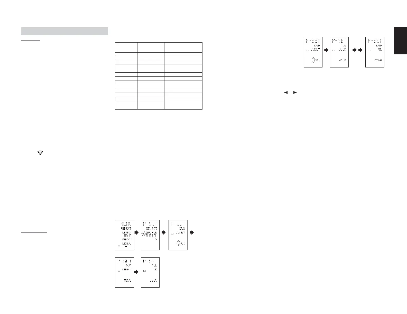The preset codes are TV, VCR, LD, CABLE, DSS,