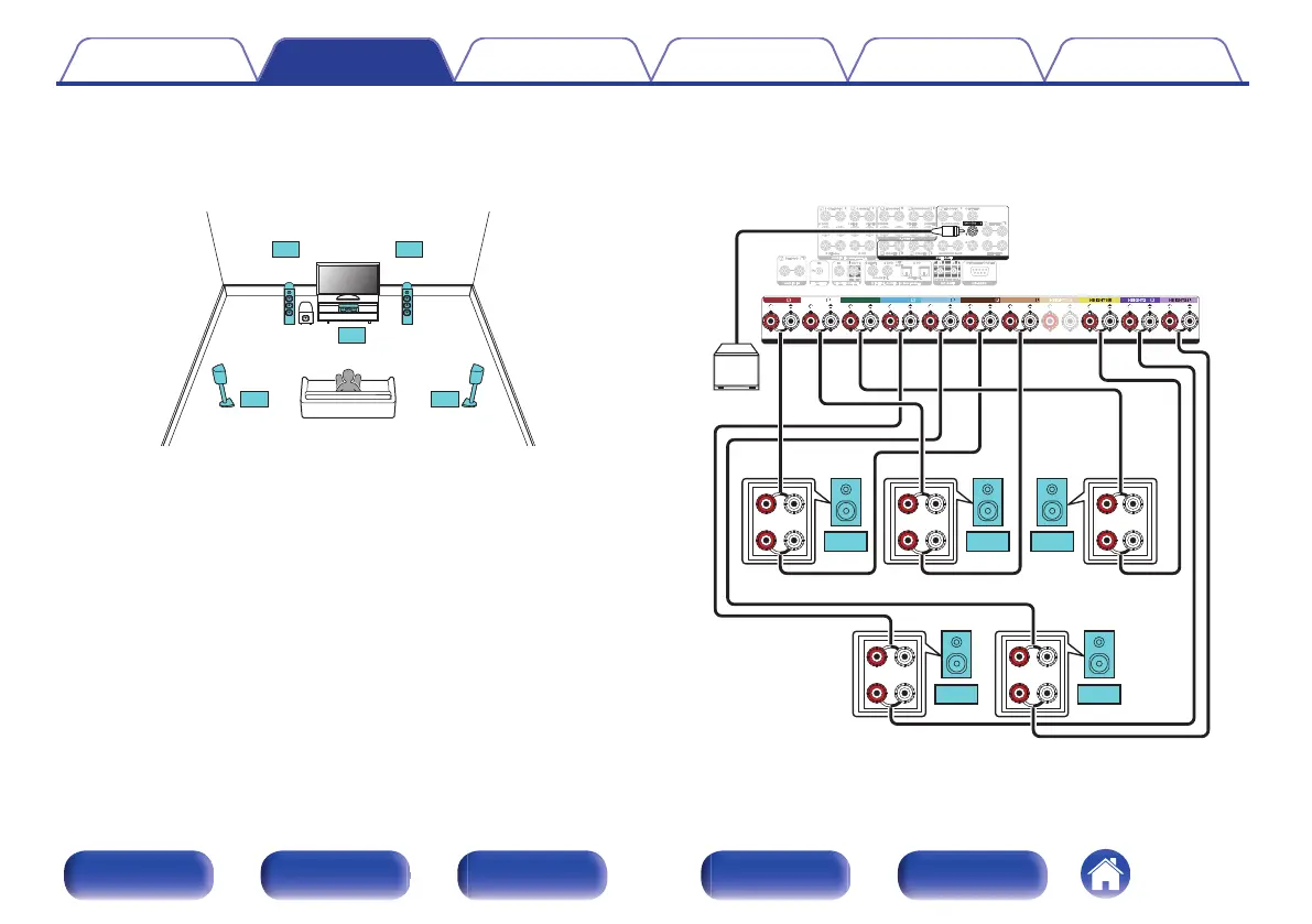 5.1-channel playback : Bi-amp connection of front, center and surround speakers