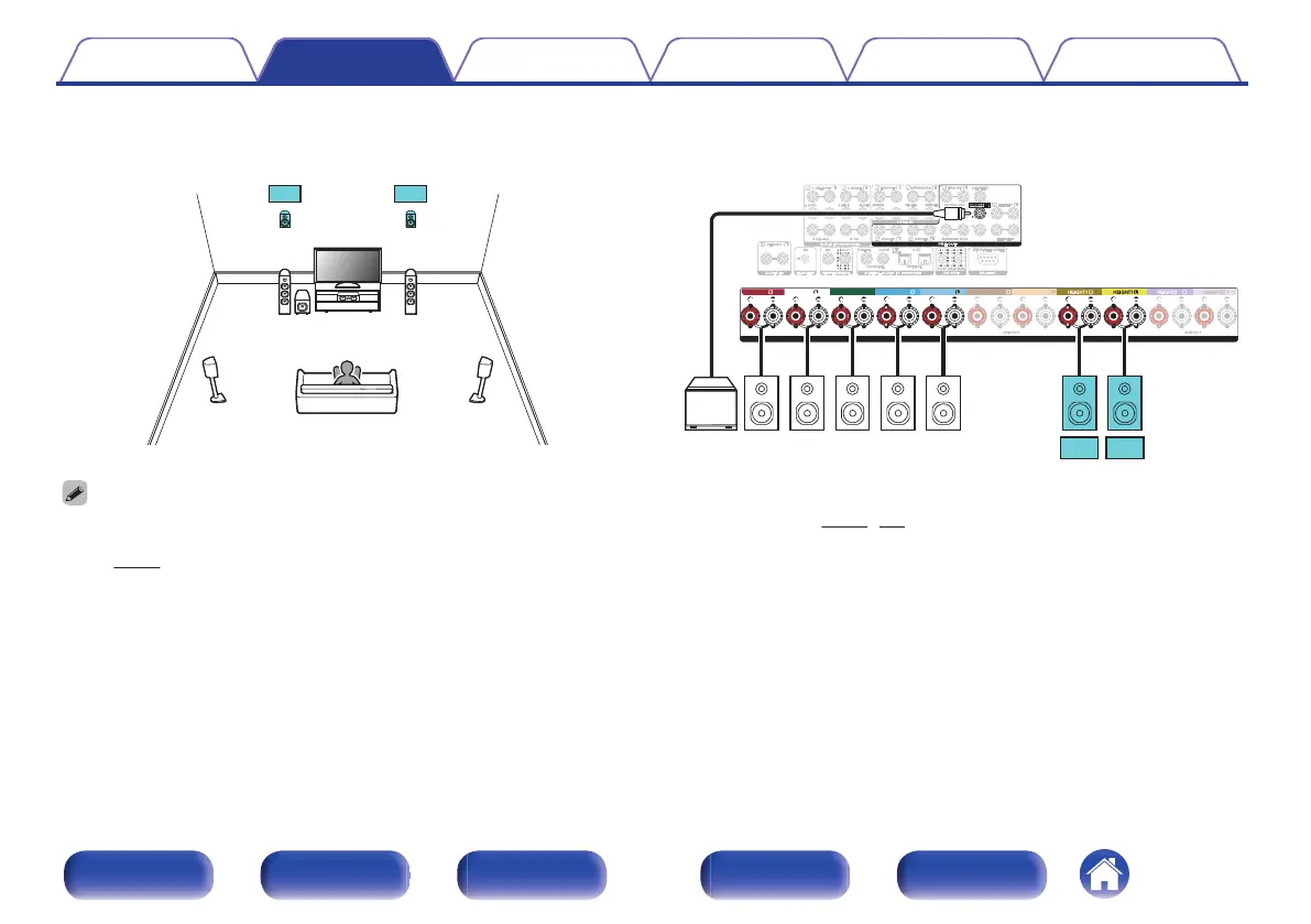 The rear height speakers can be connected instead of the front height speakers. In this case, set the height speakers to be connected under “Height” - “Layout” in the menu.