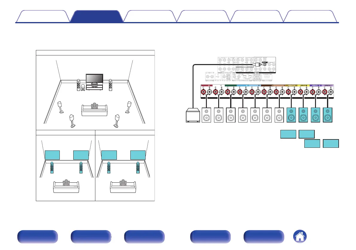 This type of configuration plays back 7.1-channels in MAIN ZONE and 2-channels in ZONE2 and ZONE3.