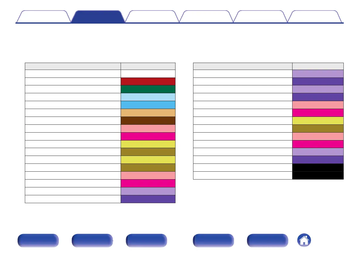 The channel display section for speaker terminals on the rear panel is color-coded for each channel to be identifiable.