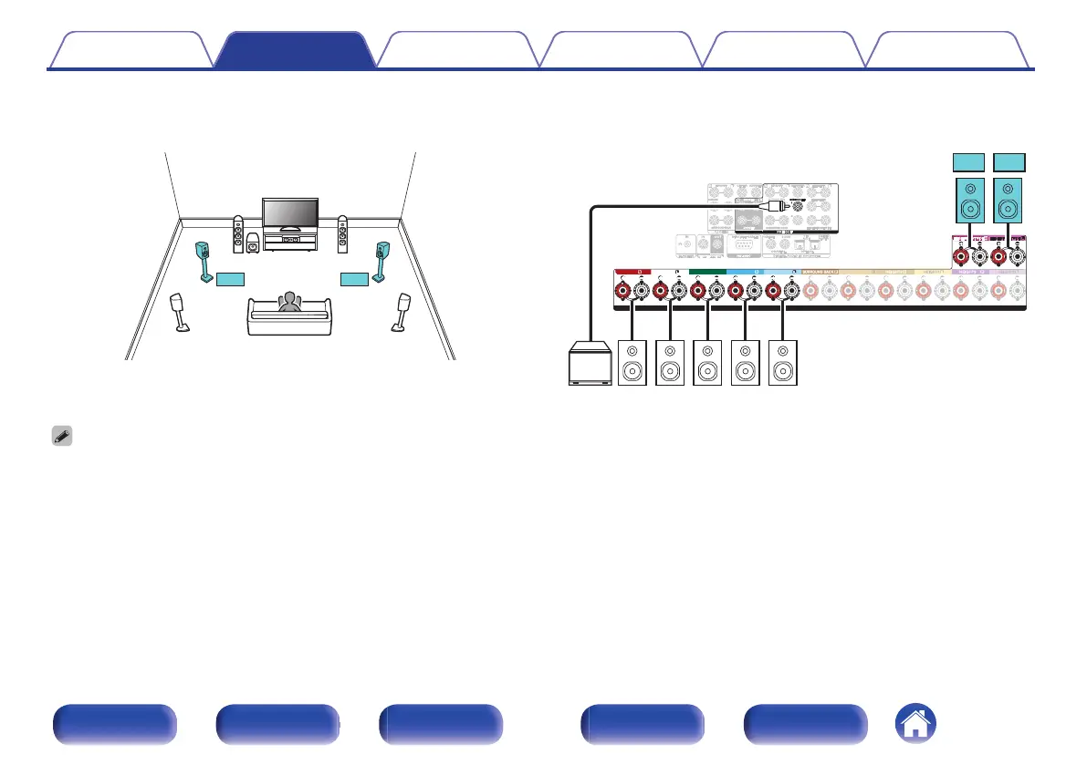 Set “Floor” to “5ch & FW” in the menu when connecting in this configuration. (v p. 234)