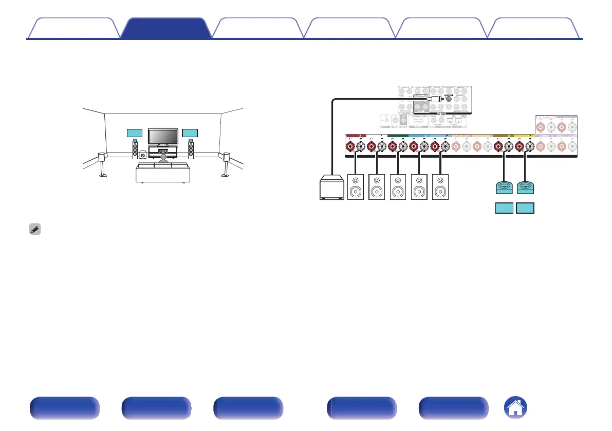 Set “Floor” to “5ch” and “Dolby Sp” to “2ch” in the menu when connecting in this configuration. (v p. 234, 235)