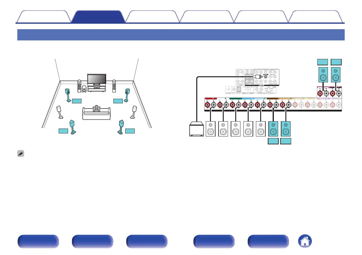 Set “Floor” to “5ch & SB & FW” in the menu when connecting in this configuration. (v p. 234)