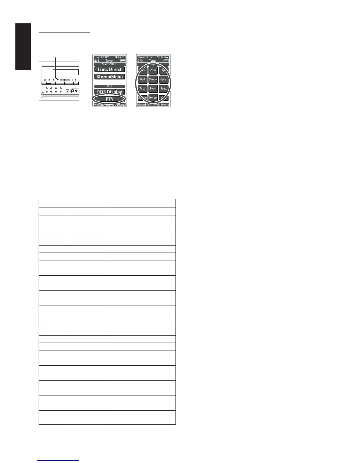 (approx. 5 seconds). The PTY Auto search will start, and the tuner