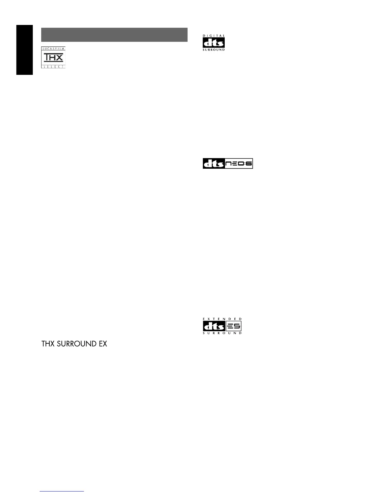 “DTS”, “DTS-ES Extended Surround” and “Neo:6” are trademarks of