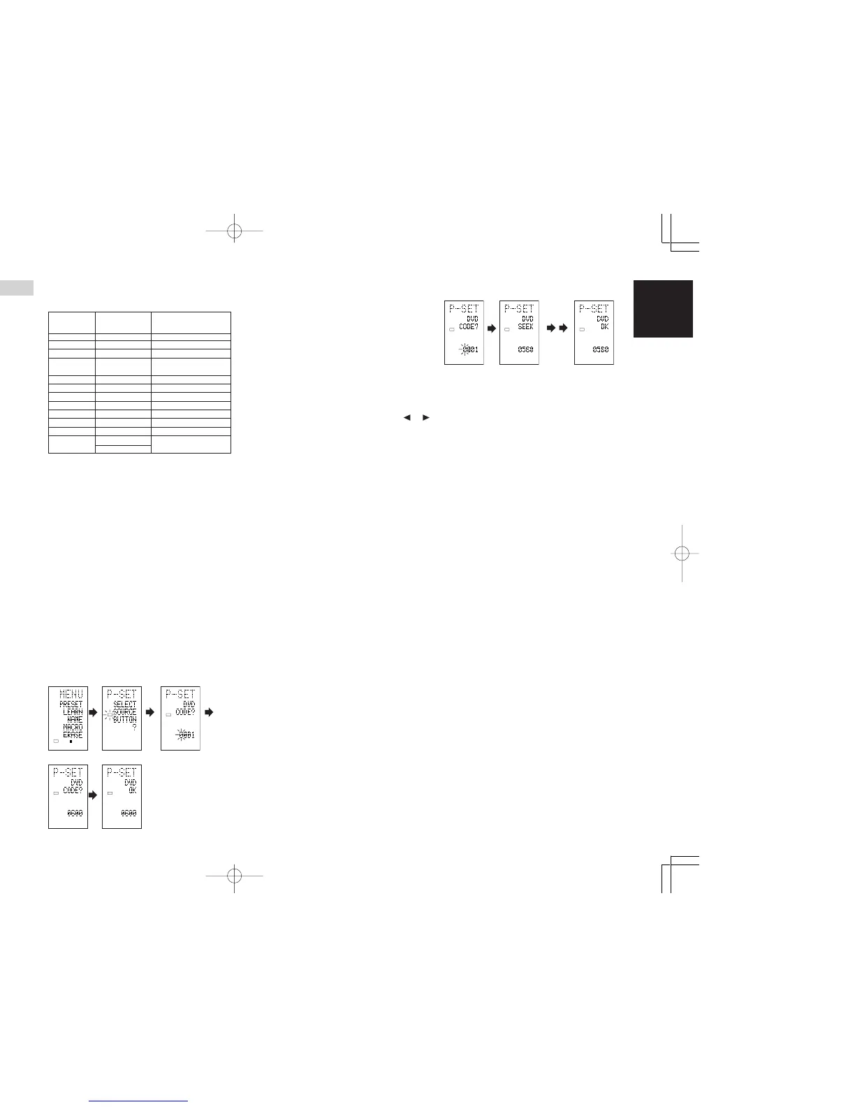 The preset codes are TV, VCR, LD, CABLE, DSS,