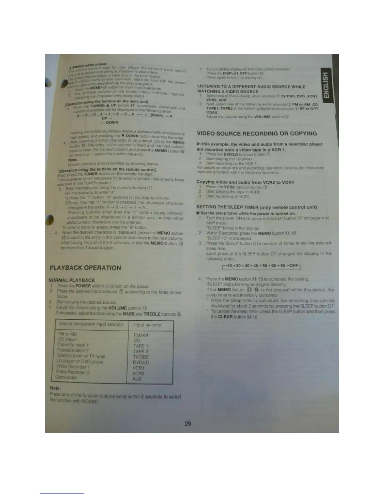 Marantz SR880 - Station Name Presetting; Playback and Source Switching