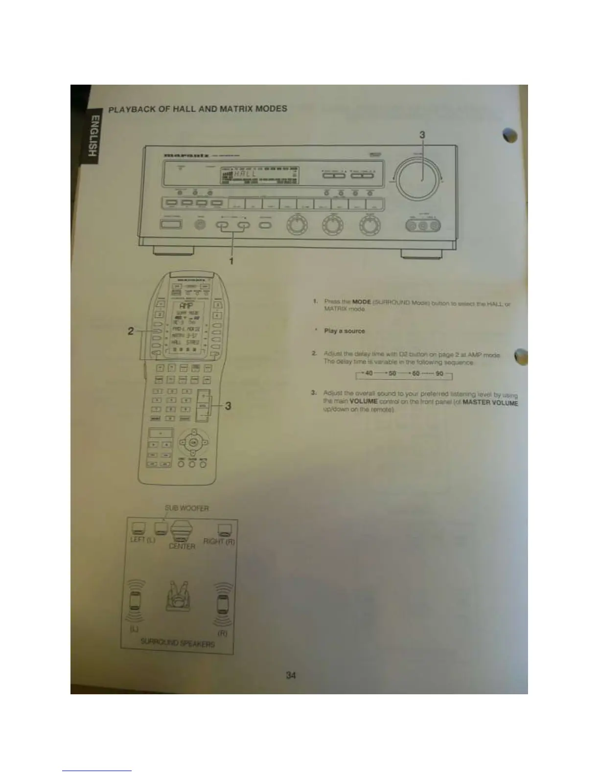 Marantz SR880 - Playback of Hall and Matrix Modes