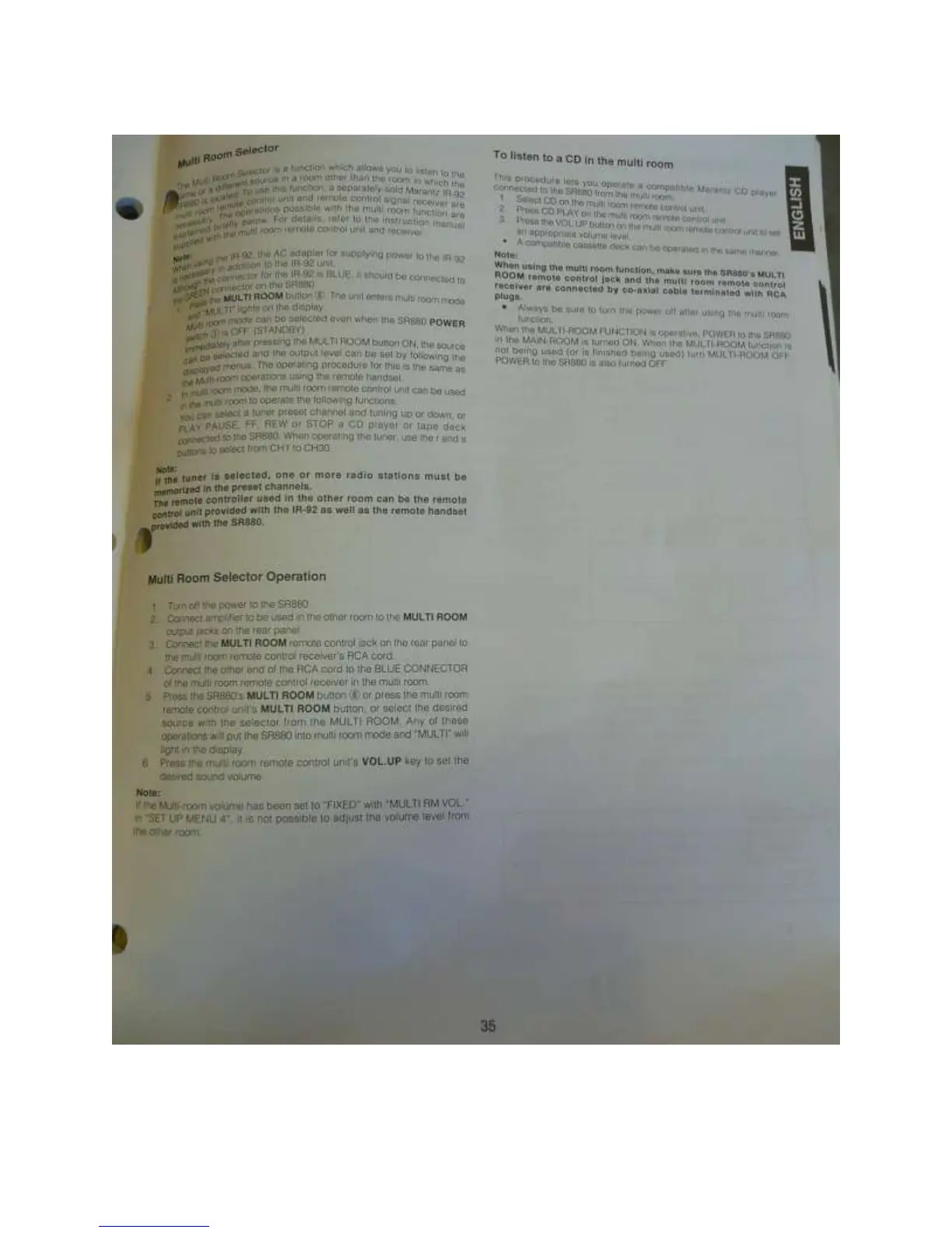 Marantz SR880 - Multi-Room Functionality; Multi-Room Listening and Operation