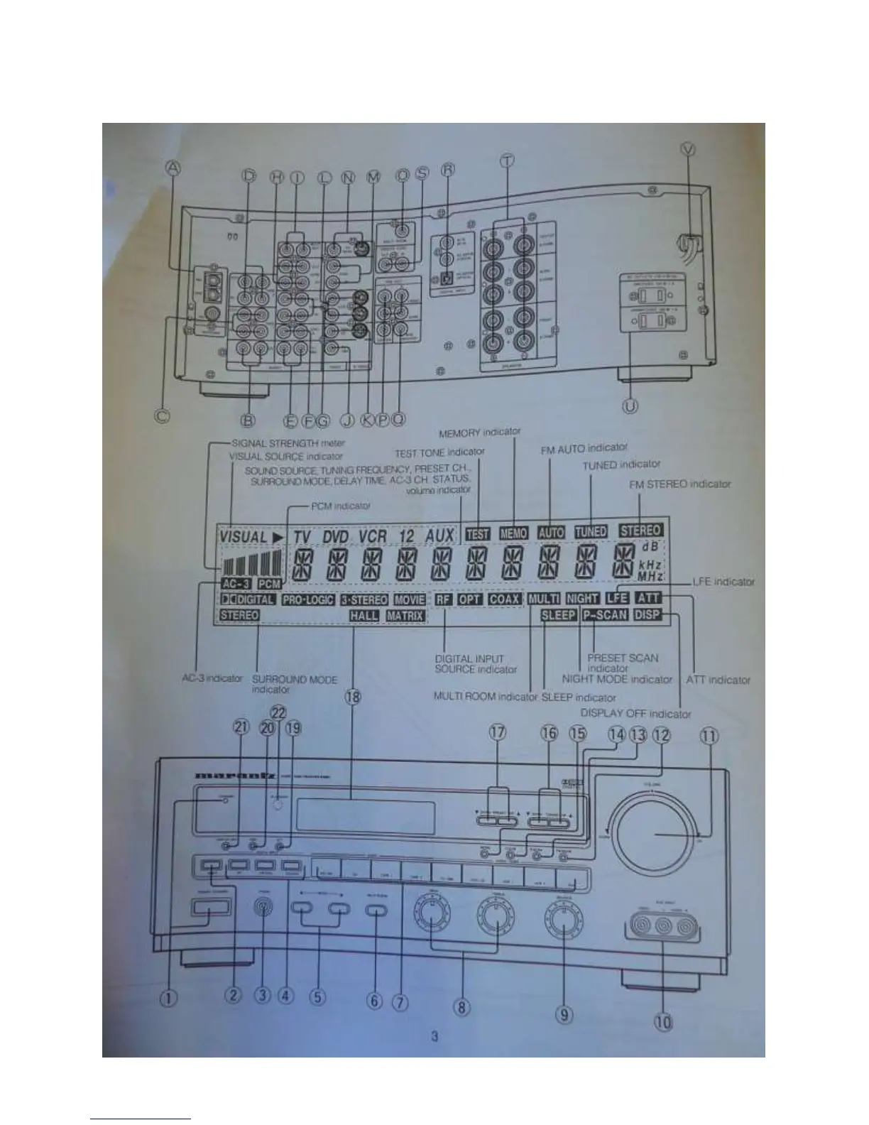 Marantz SR880 - Front Panel Overview; Indicator and Control Identification