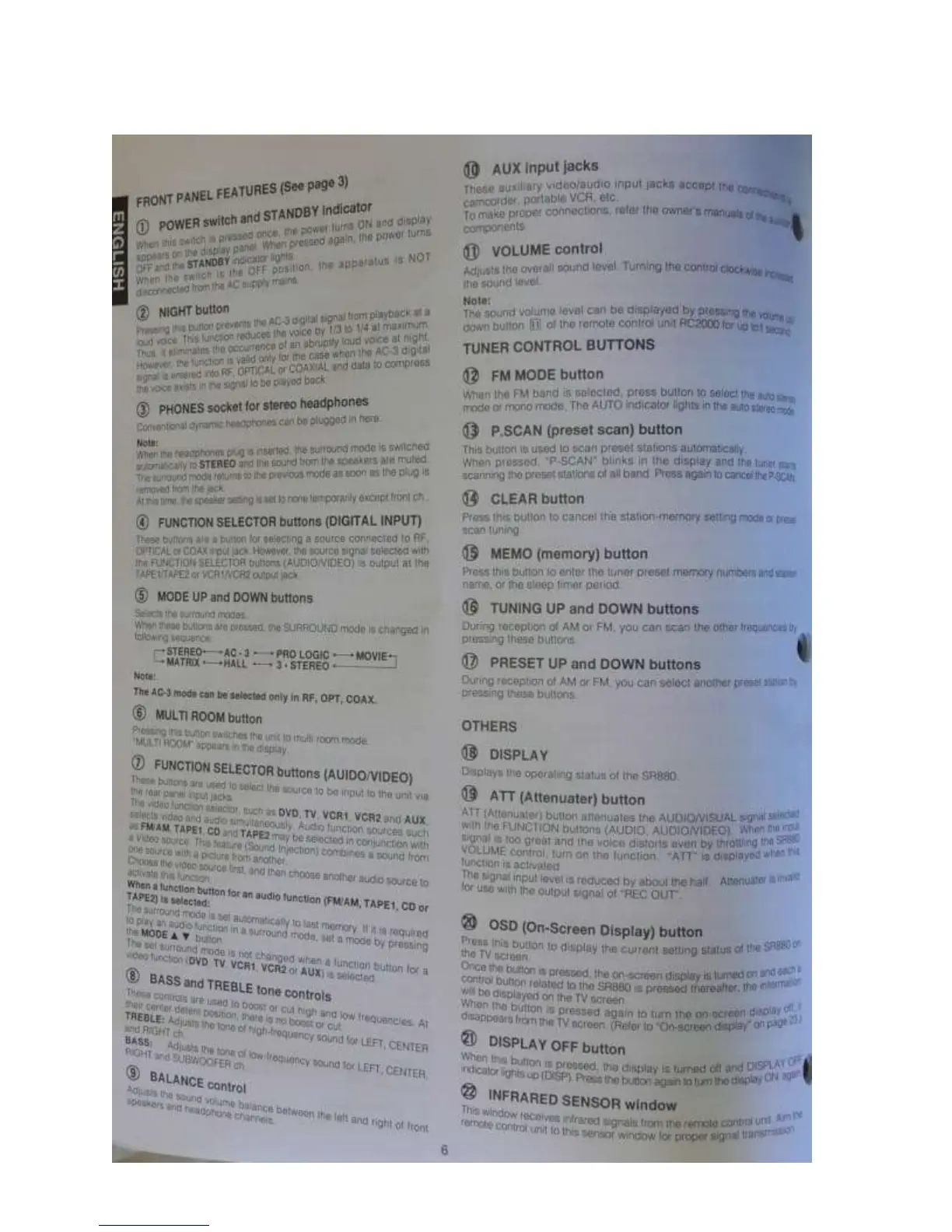 Marantz SR880 - Front Panel Controls and Operation; Power, Mode, and Input Controls; Tuner, Tone, and Display Controls
