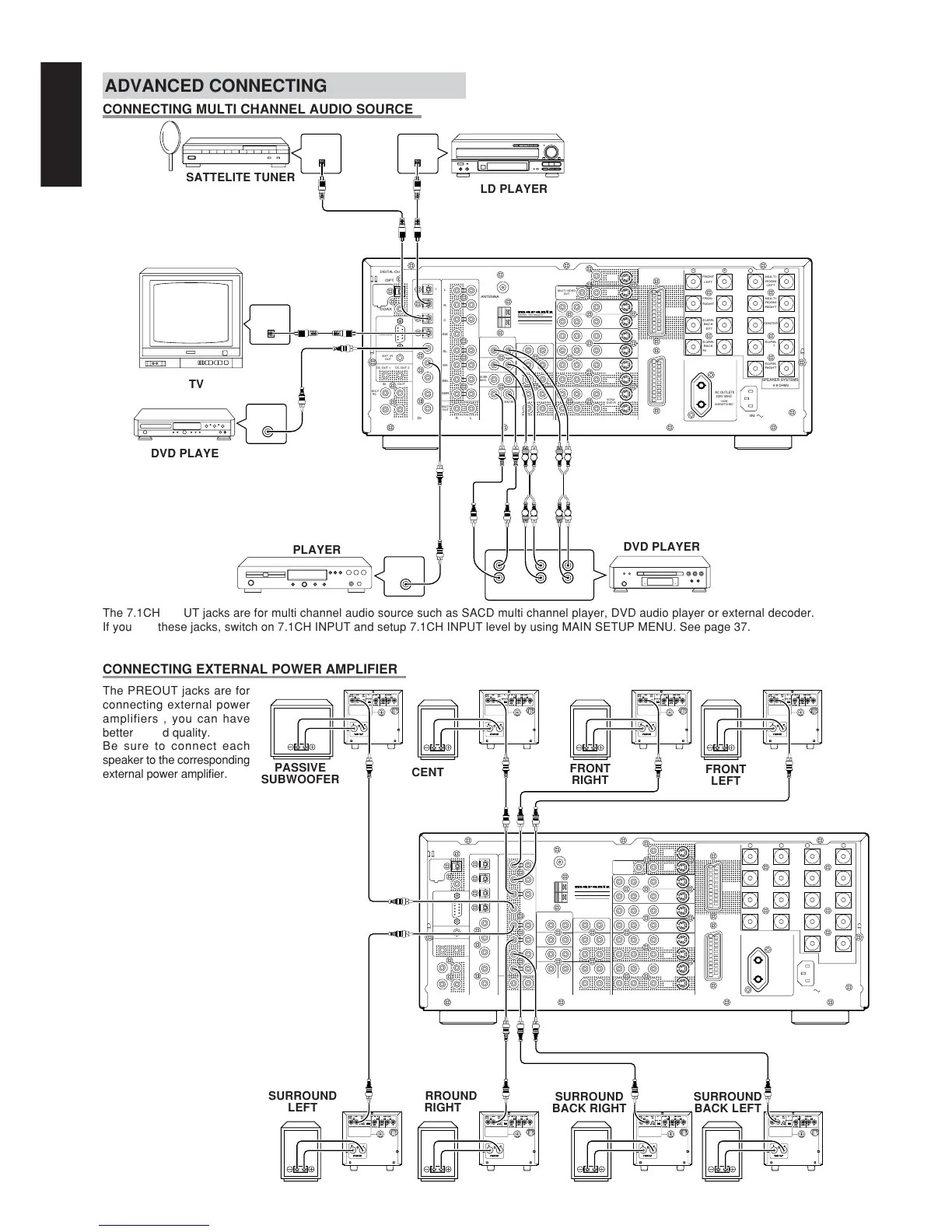 If you use these jacks, switch on 7.1CH INPUT and setup 7.1CH INPUT level by using MAIN SETUP MENU. See page 37.