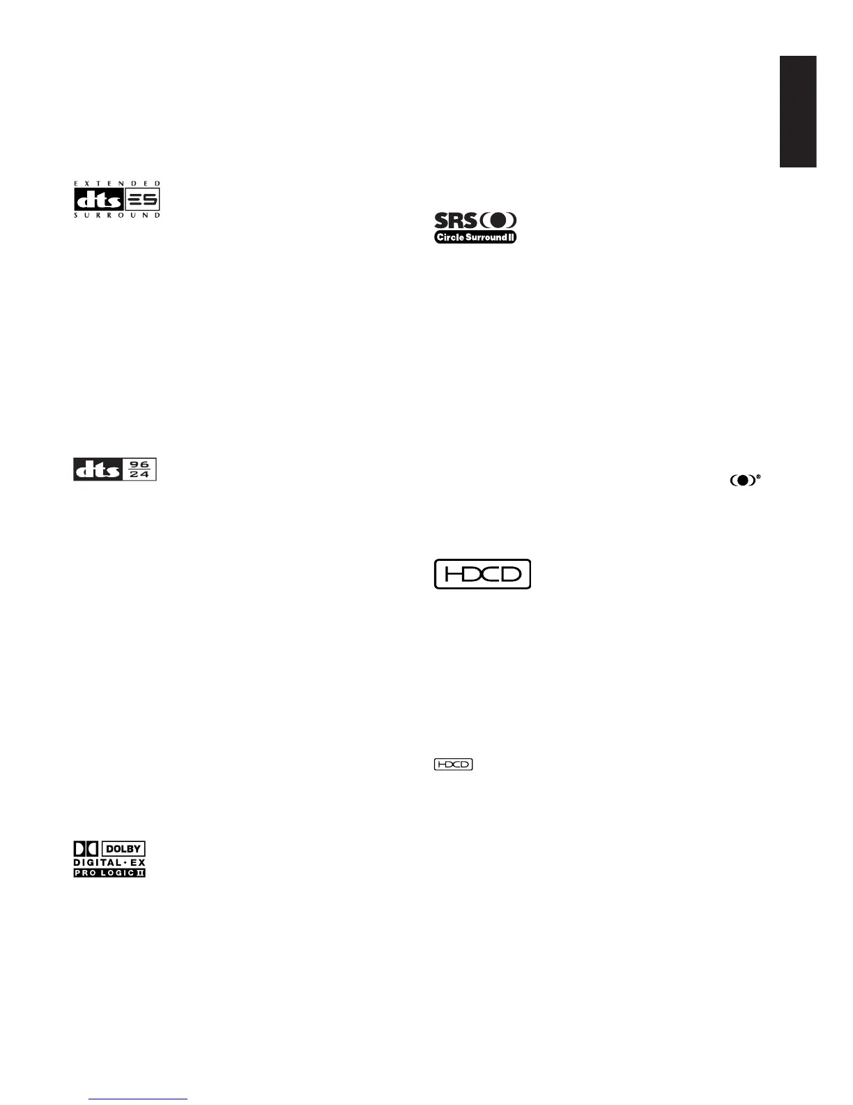 “DTS”, “DTS-ES Extended Surround” and “Neo:6” are trademarks of