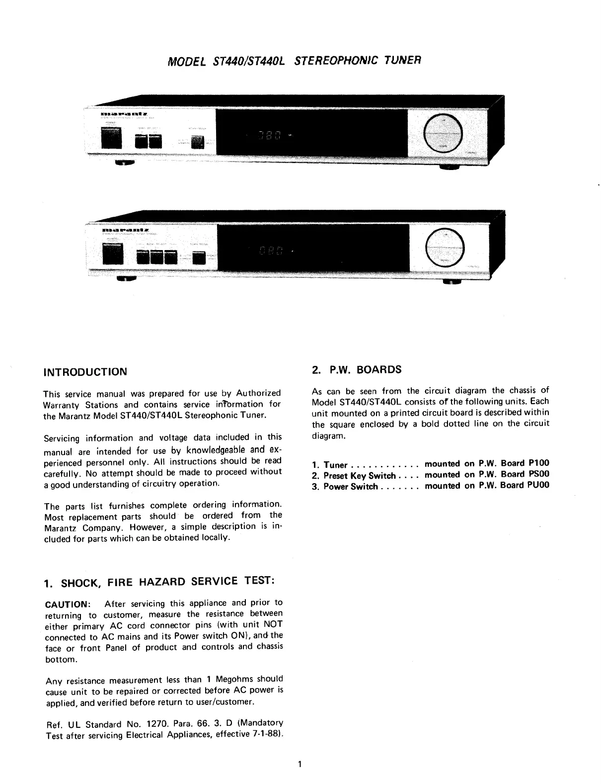 1. SHOCK, FIRE HAZARD SERVICE TEST: