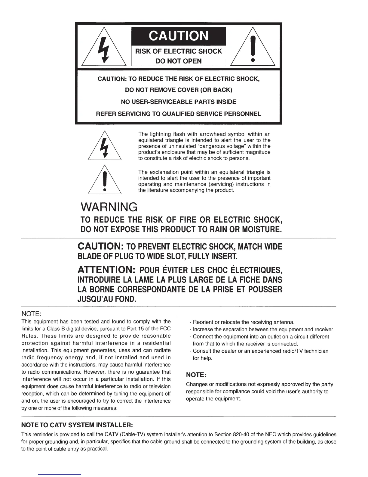 CAUTION: TO REDUCE THE RISK OF ELECTRIC SHOCK,