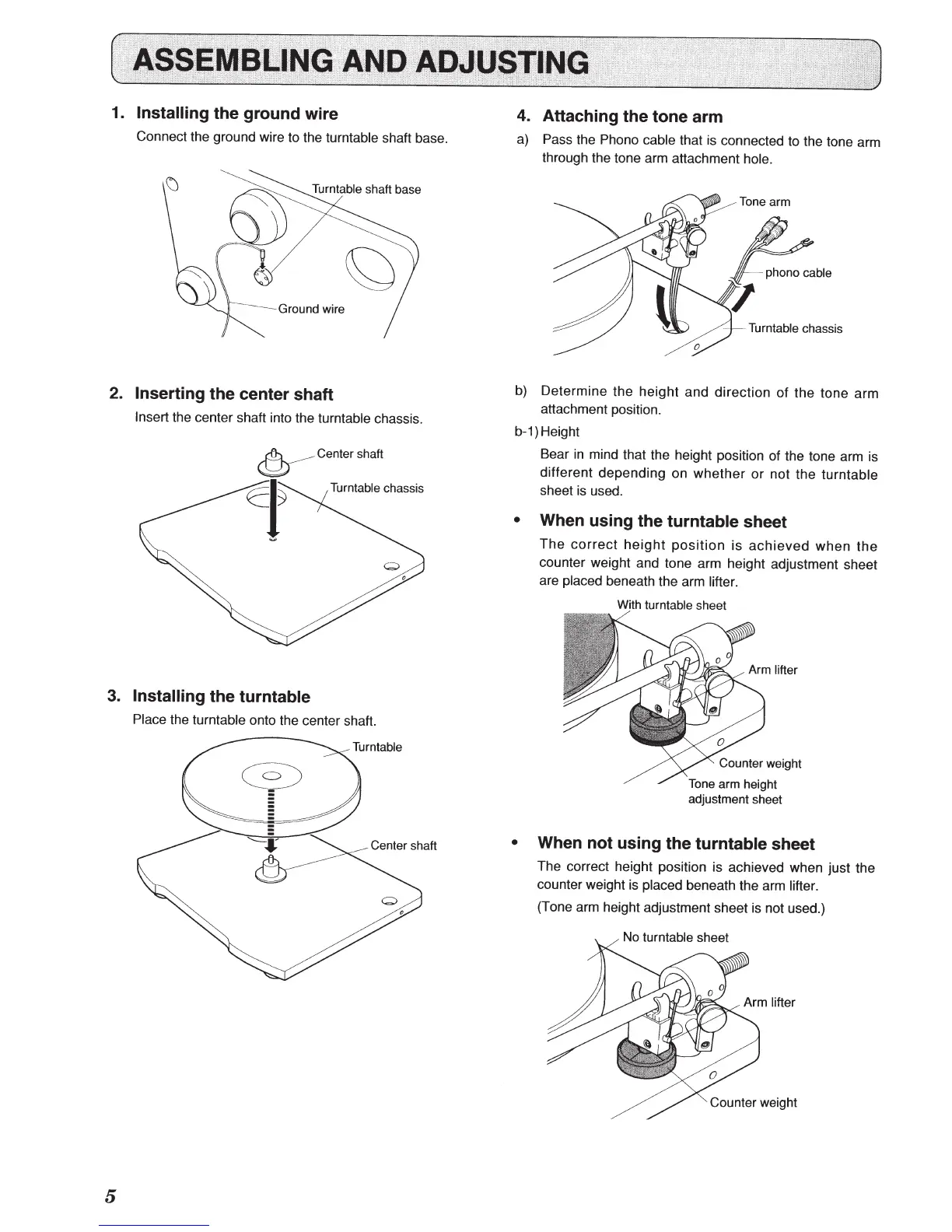 counter weight and tone arm height adjustment sheet