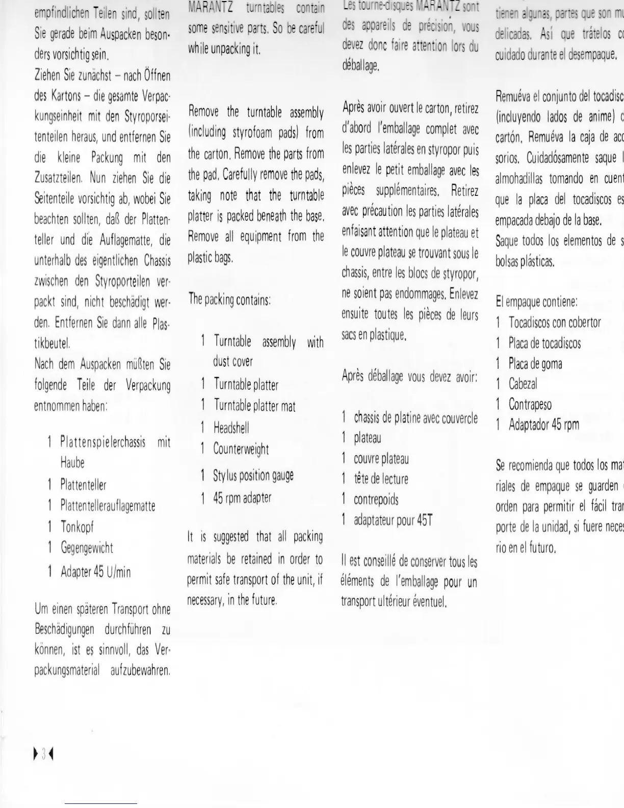Marantz TT2200 - Packing Contents