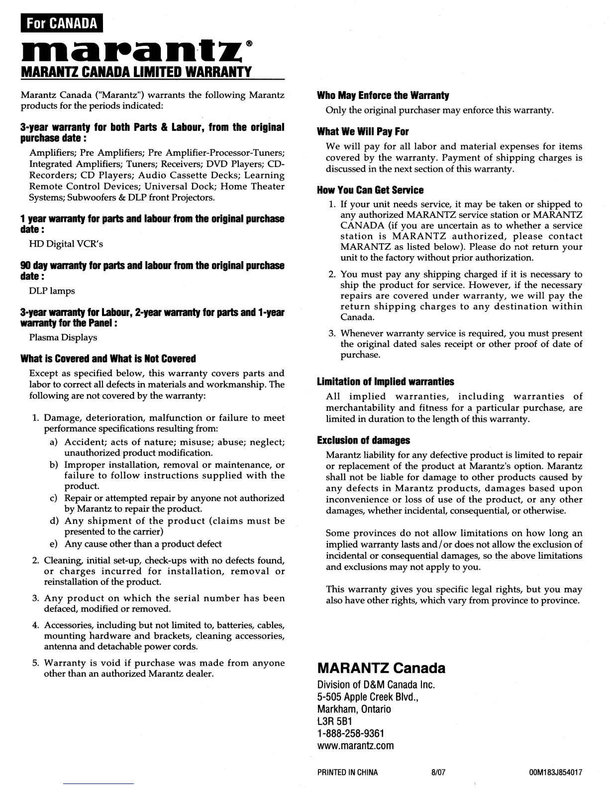 MARANTZ Canada