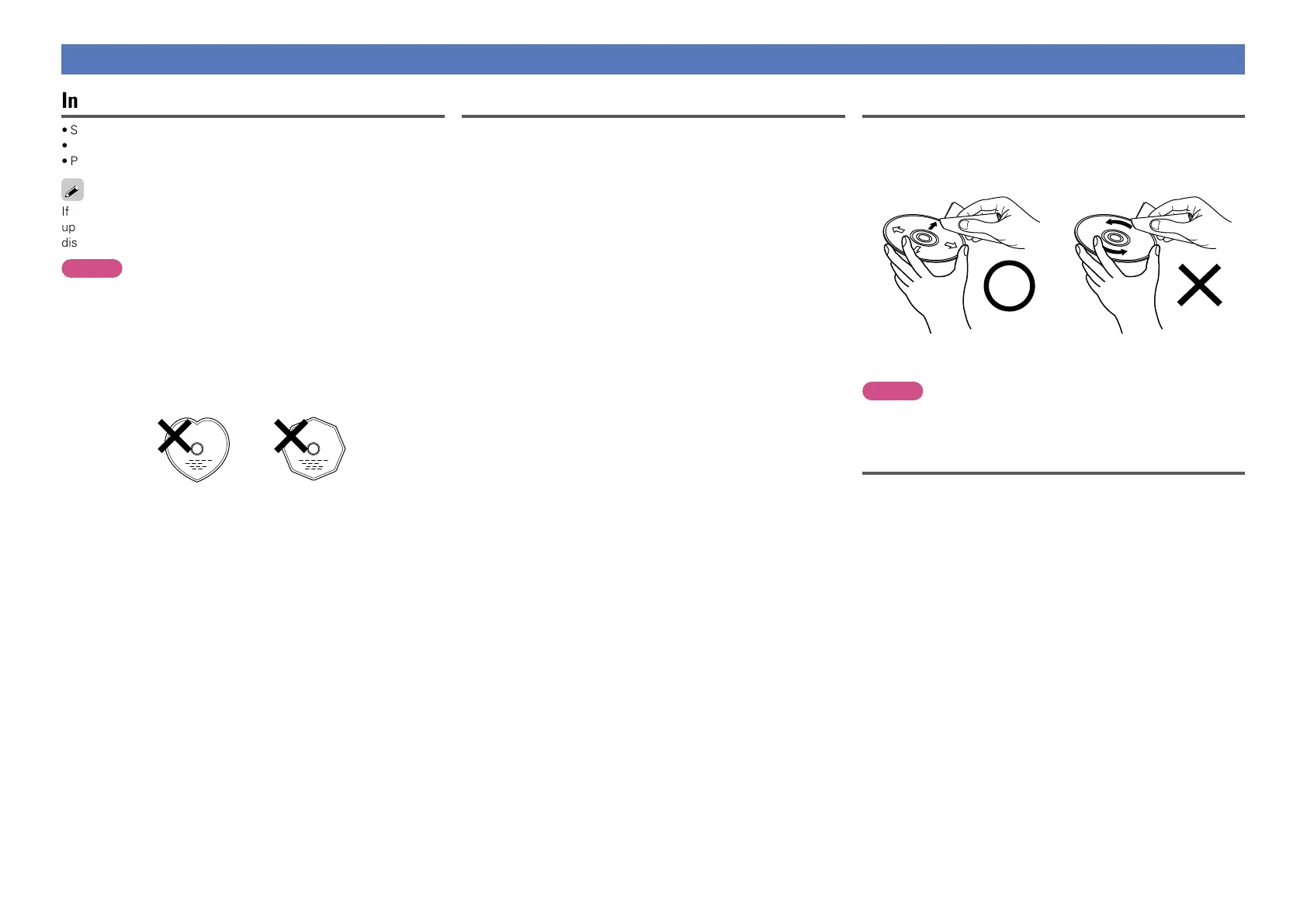 •Do not use discs on which the sticky part of cellophane tape or labels
