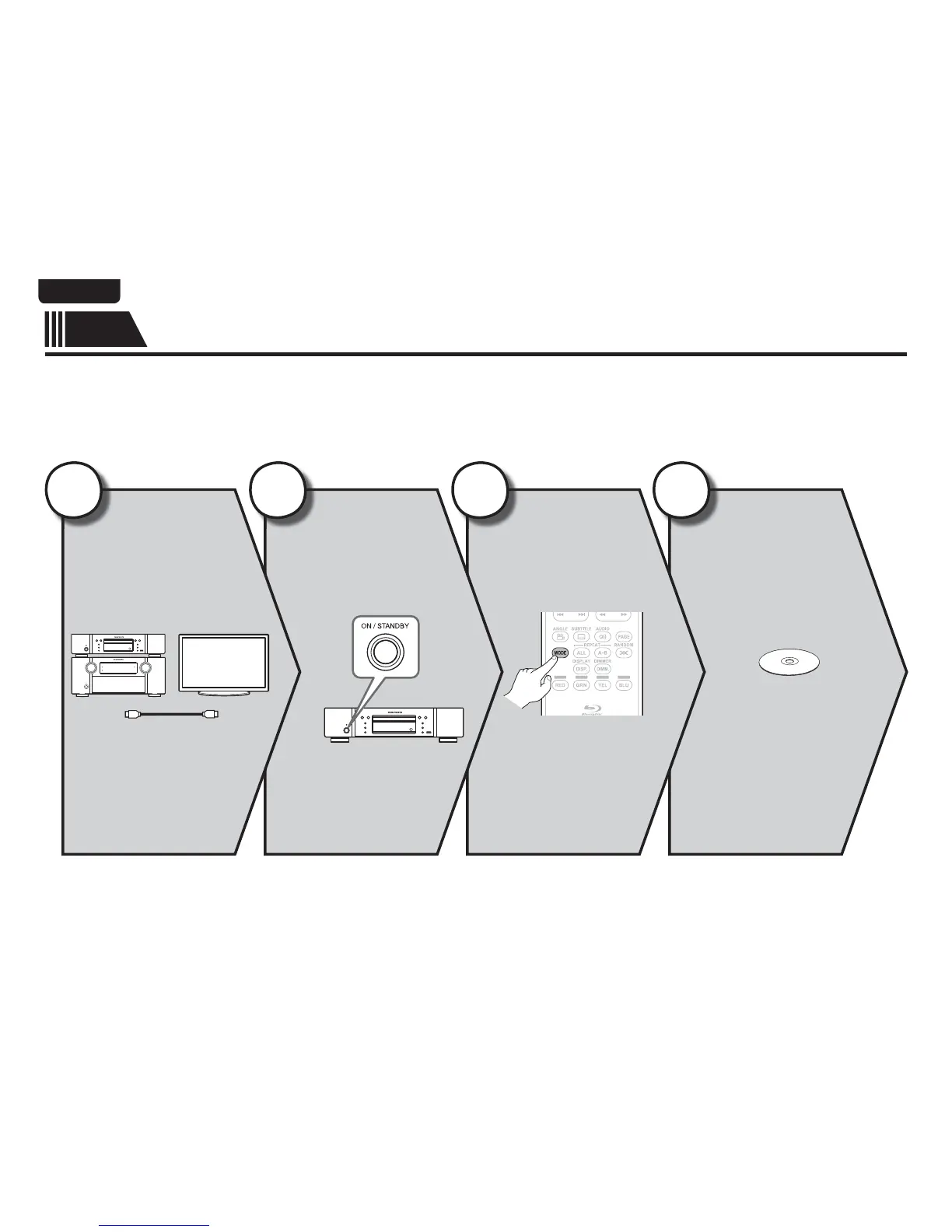 This section briefly describes the procedures from connecting this unit and a television or AV receiver, using an HDMI cable, to start