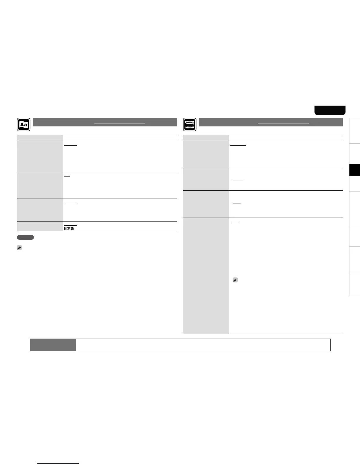 Set the language used for playback dialogs, subtitles, and menus. Set the HDMI output signal or HDMI control function.