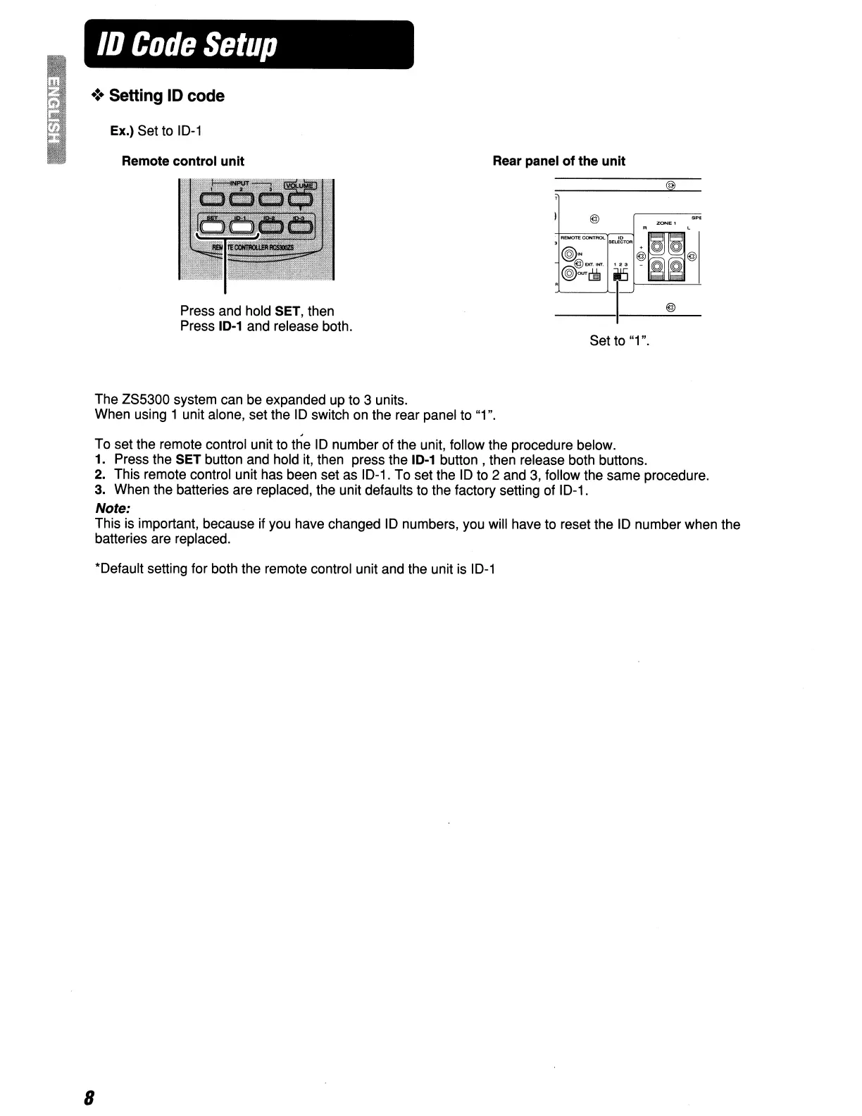 *Oefault setting for both the remote control unit and the unit