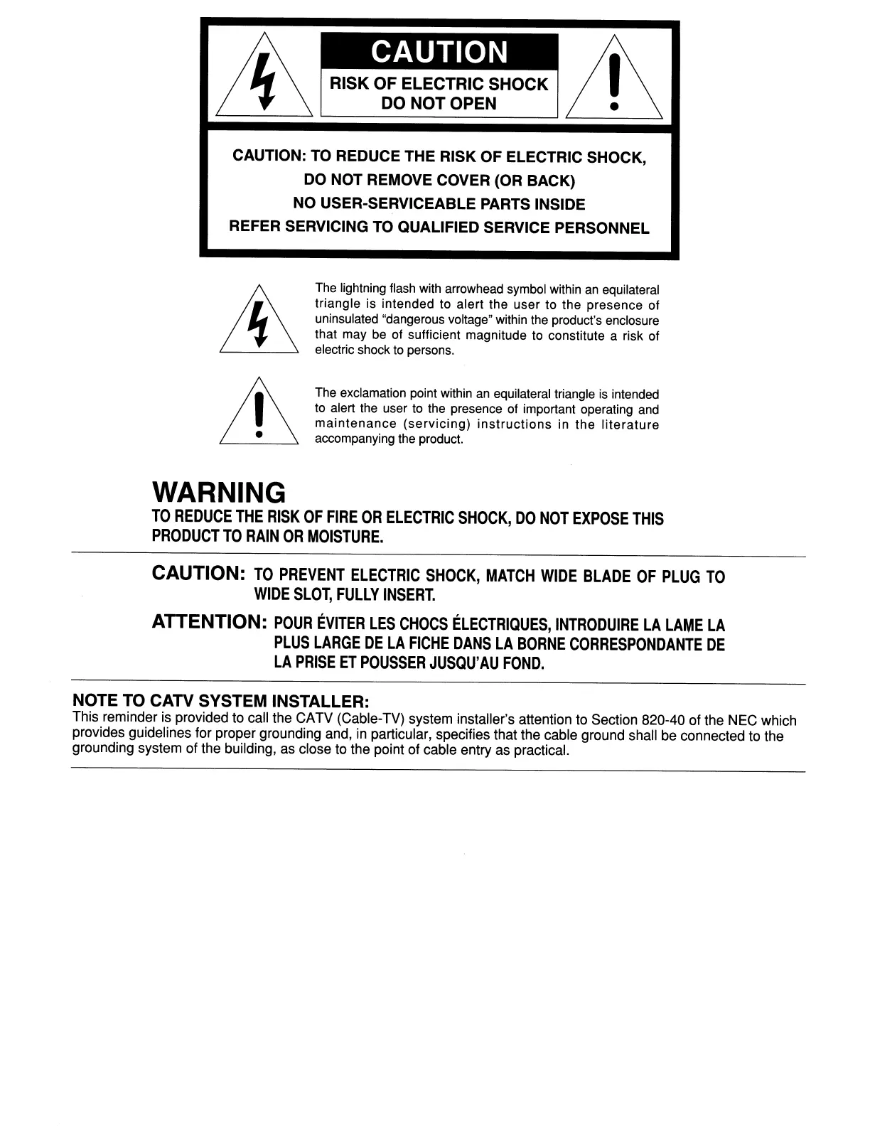 NOTE TO CATV SYSTEM INSTALLER: