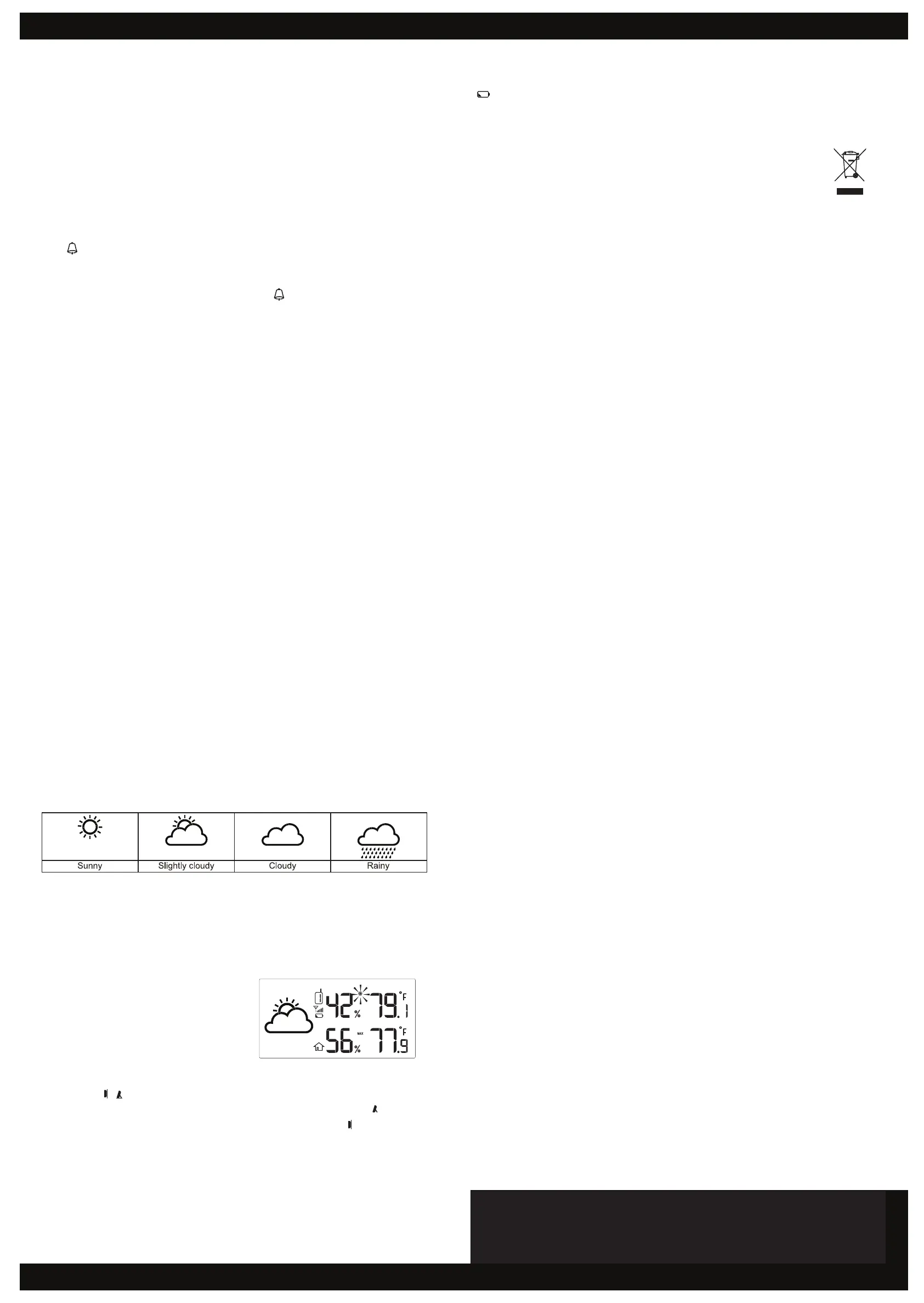 “ ” is displayed in the outdoor window, replace the 2 AA size batteries in the sensor.
