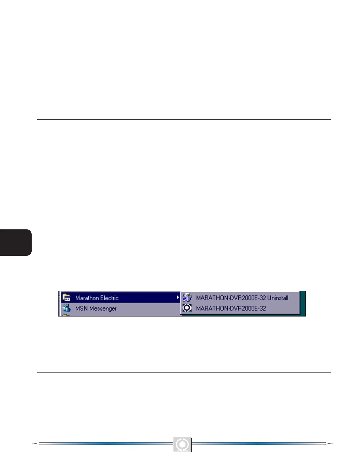 Programs, the Marathon Electric folder, and then clicking the MARATHON-DVR2000E-32 icon. At startup, a dialog