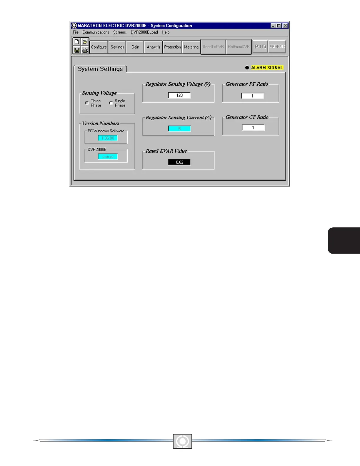 the voltage displayed through MARATHON-DVR2000E-32 to match the actual generator output voltage. A ratio of