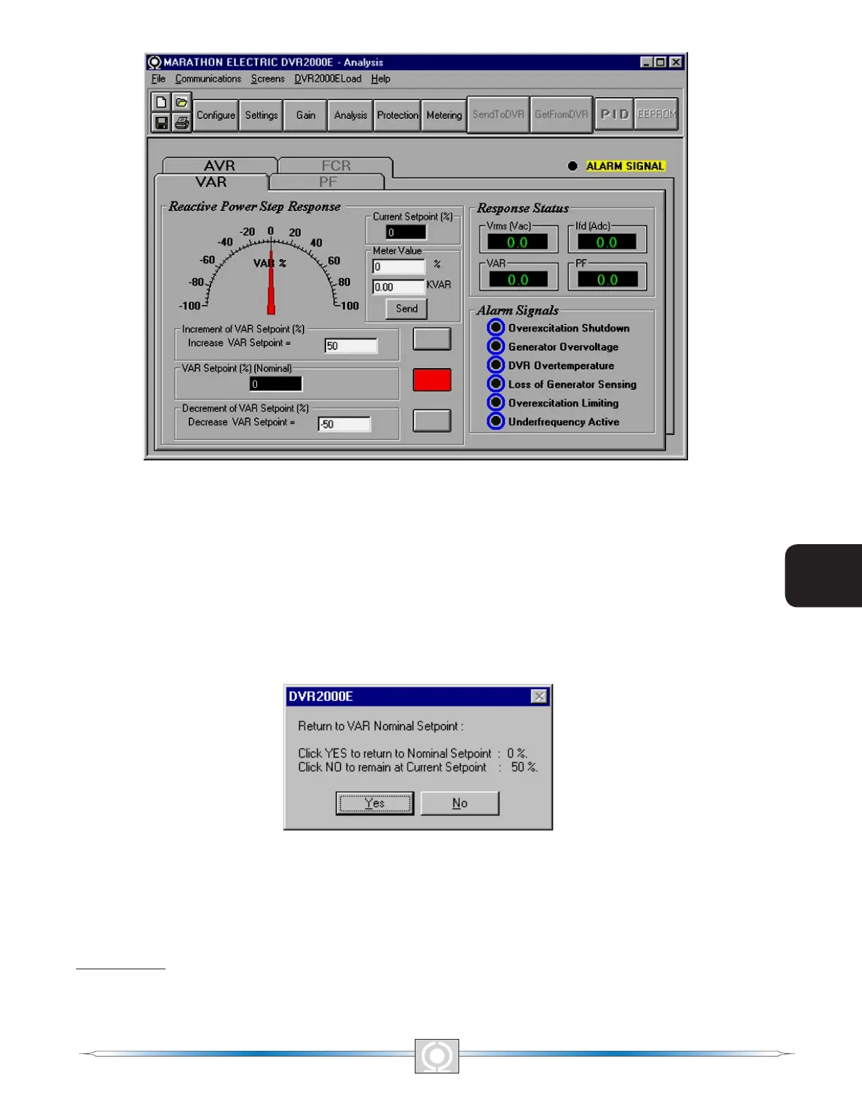 To return to the nominal setting the button adjacent to VAR Setpoint (Nominal) should be pressed. If the VAR