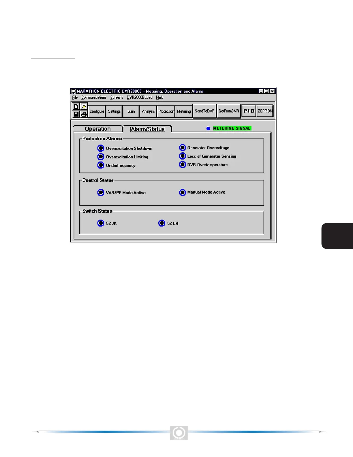 Protection Alarms. Six Protection Alarm indicators provide the status of DVR2000E protection functions. Alarm